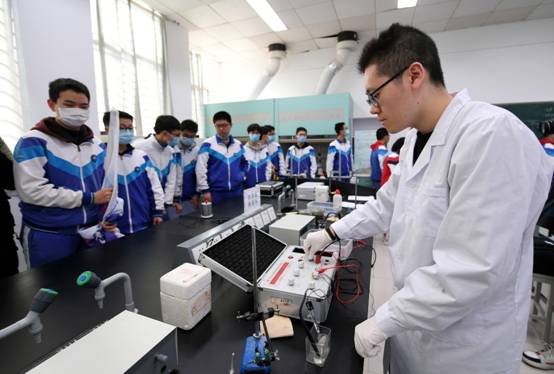 在参观过程中,一直有一群热心的南大学长在陪伴同学们。其中大四学生戴飞是我校2017届毕业生,曾获得全国中学生化学奥林匹克竞赛省级赛区一等奖,目前已被保送上海有机研究所硕博连读。