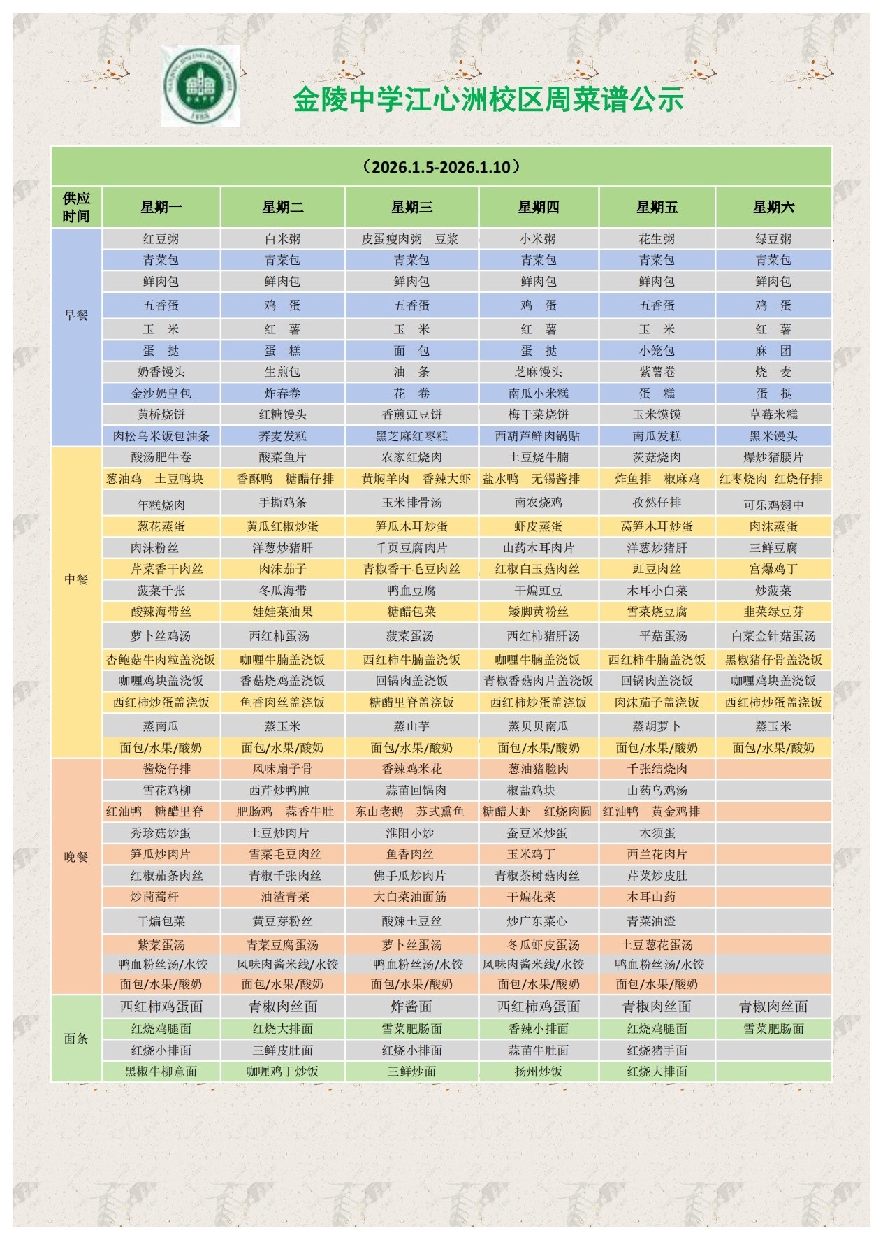 江心洲校区一周菜谱(2026.1.5—1.10)