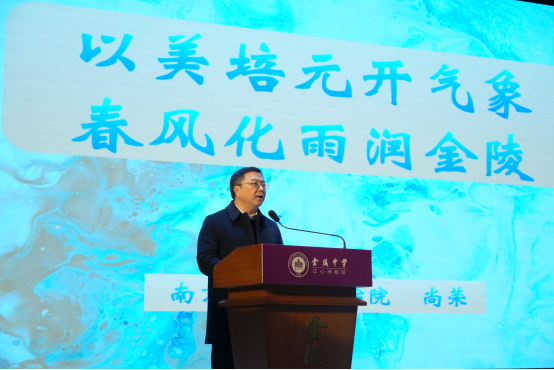 润物无声,是为春风;化人无形,是为美育。三月金陵,春水初生,草木蔓发。在这美好的时节,我走进拥有百卅年辉煌历史的金陵中学,扑面而来的不仅是盎然的春意,更有学子们潜心向学的浓厚氛围和独属于青春的创造活力。我是南京大学艺术学院尚荣,既是一名艺术教育者,也是一名雕塑工作者。今天我想围绕本届艺术节的主题——“以美培元开气象,春风化雨润金陵”,与大家共话美育,同迎艺术节的开幕。