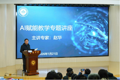 许峰校长发表开场致辞,他强调孙小红书记高度重视AI赋能教学,指导部署了一系列的研讨活动,年初亲自布置全体教师学习了《通用人工智能》;上周五,又邀请参与“学生至上”开放日的五位教师分享AI赋能教学的深刻见解;今日,系列活动第三场专家讲座举行,再次邀请到老朋友赵华教授,他将深入剖析相关理论,引领我们探索教育实践新高度。