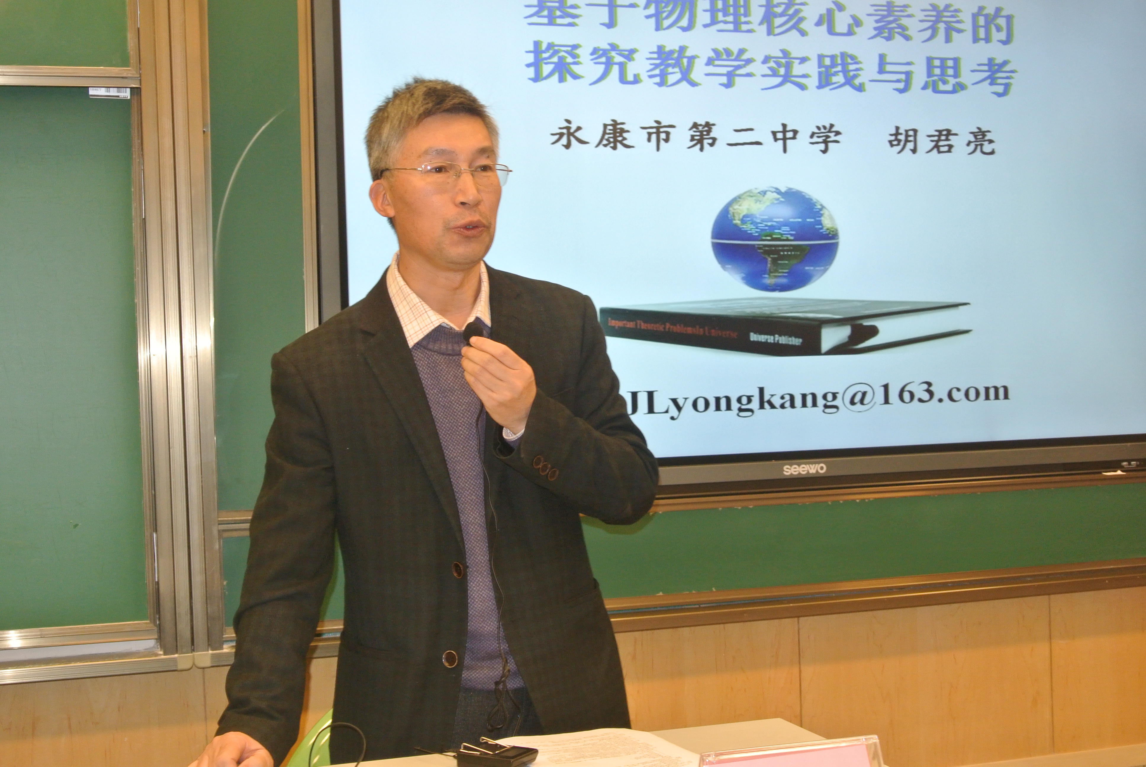 有12位物理“大家”,通过专题讲座形式展示了他们近期的课堂教学研究成果。教学改革类的研究成果有:浙江宁波镇海中学黄国龙老师的“习题教学的优化”, 南京市教研室杨震云老师的“基于课标的高中物理‘深度备课’行动侧记”, 南师附中唐龙老师的“让探究成为物理课堂教学的常态”, 扬州市新华中学薛义荣老师的“基于核心素养的物理课堂教学思考”。
