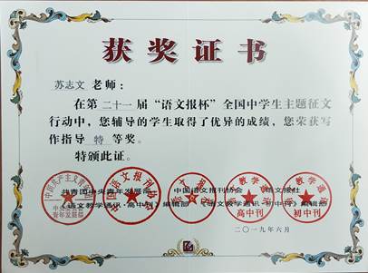 第二十一届“语文报杯”全国中学生主题征文行动中我校师生取得优异成绩