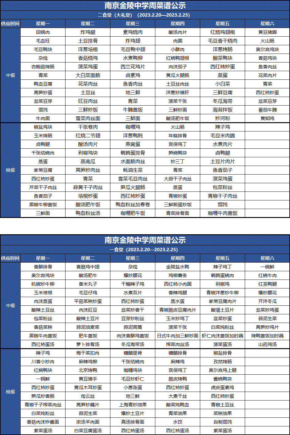 一周菜谱(2023.2.20--2023.2.25)