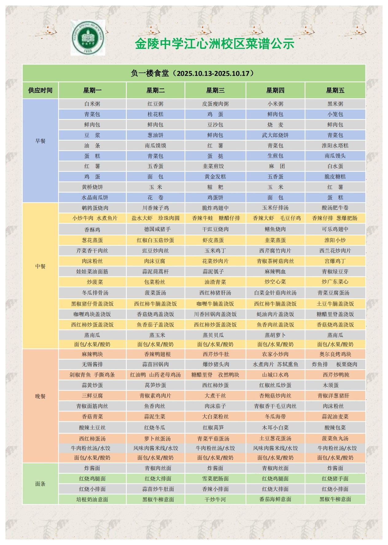 江心洲校区一周菜谱(2025.10.13—10.17)