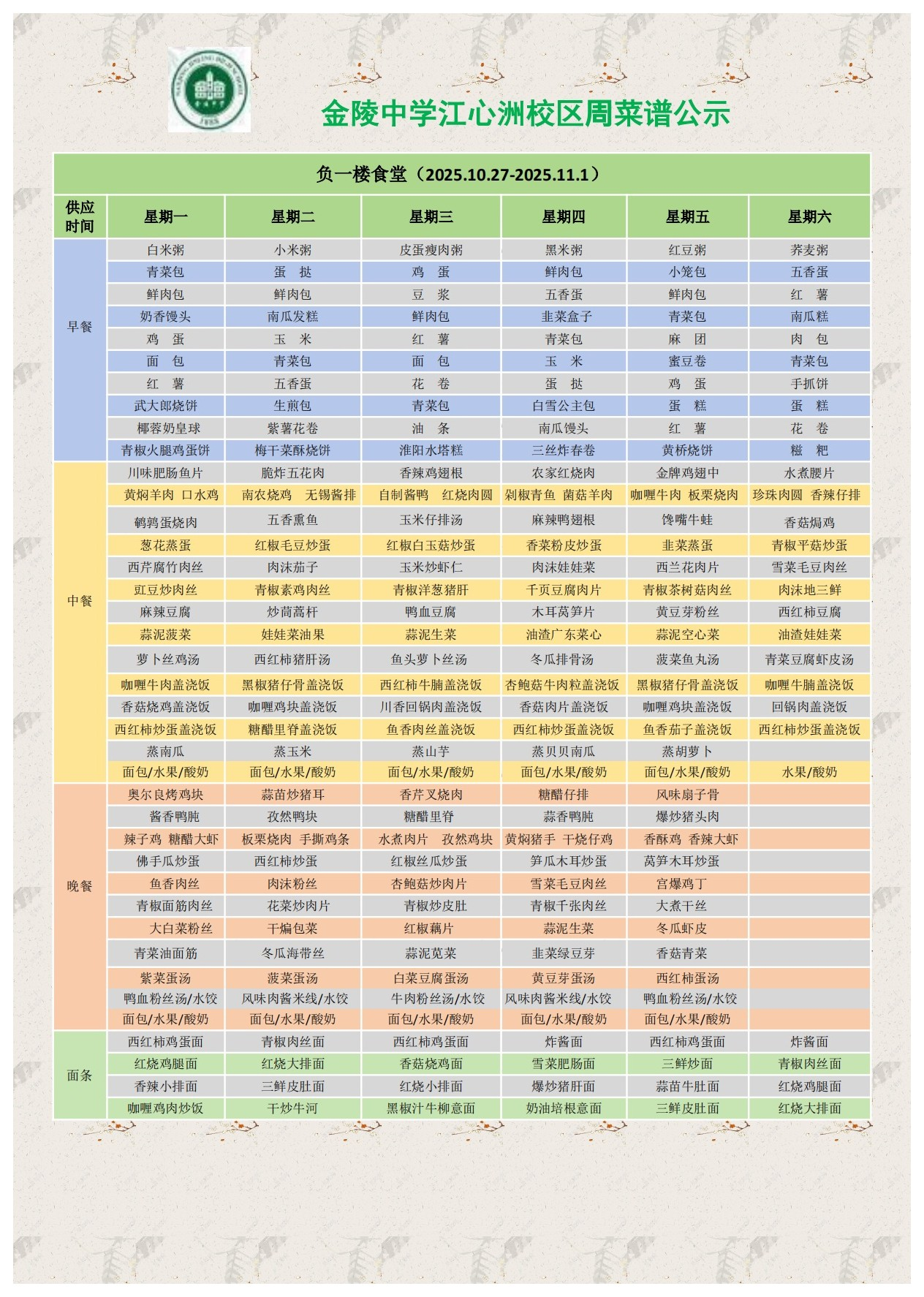 江心洲校区一周菜谱(2025.10.27—11.1)