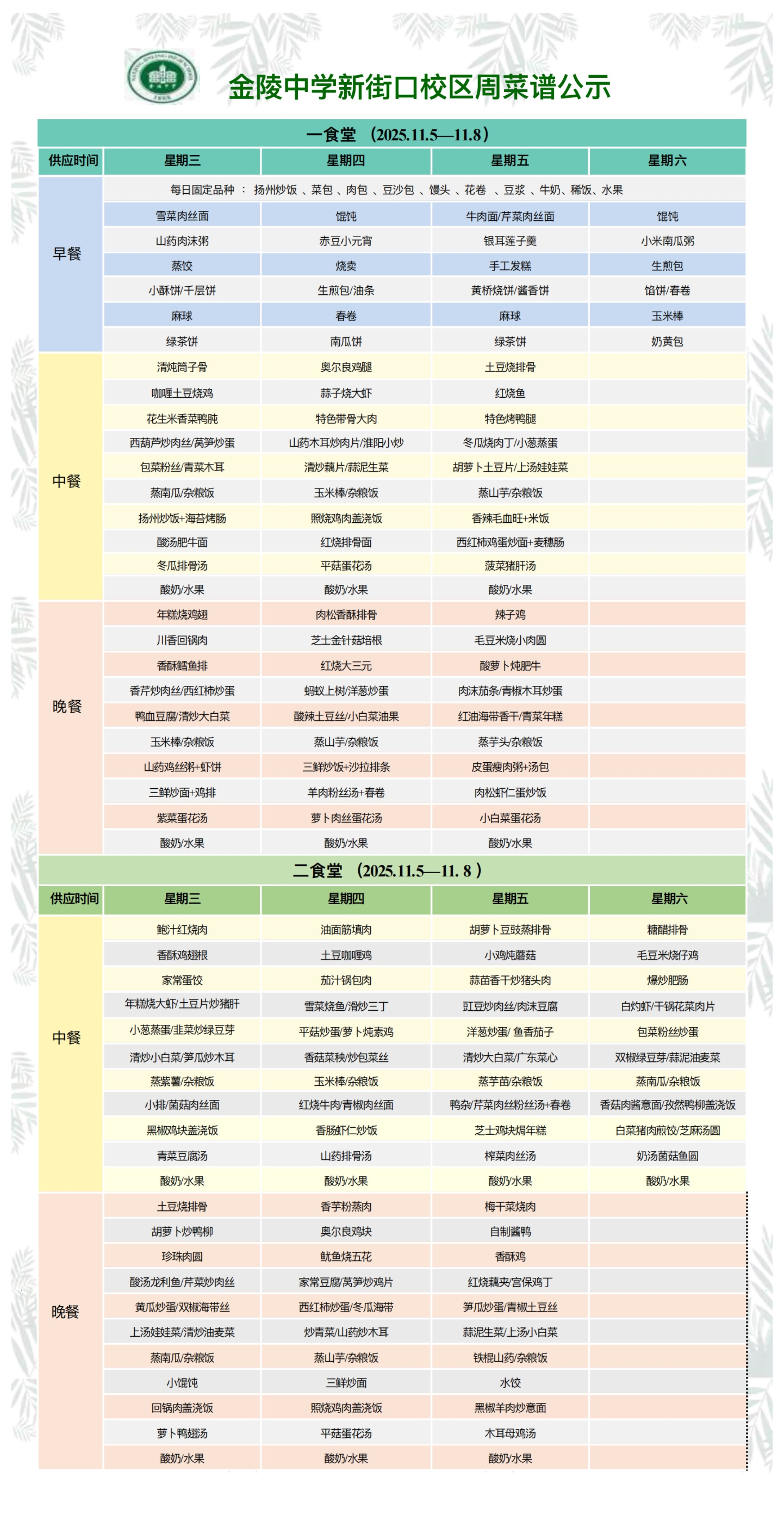 新街口校区一周菜谱(2025.11.5—11.8)