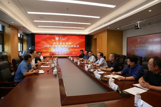 为全面了解开学各项准备工作落实情况,确保新学期开学工作平稳有序,2023年9月1日下午南京市教育局副局长戴兴海、市教育局人事处副处长朱坤、市教育局安全处一级主任科员田高超和市教育局人事处二级主