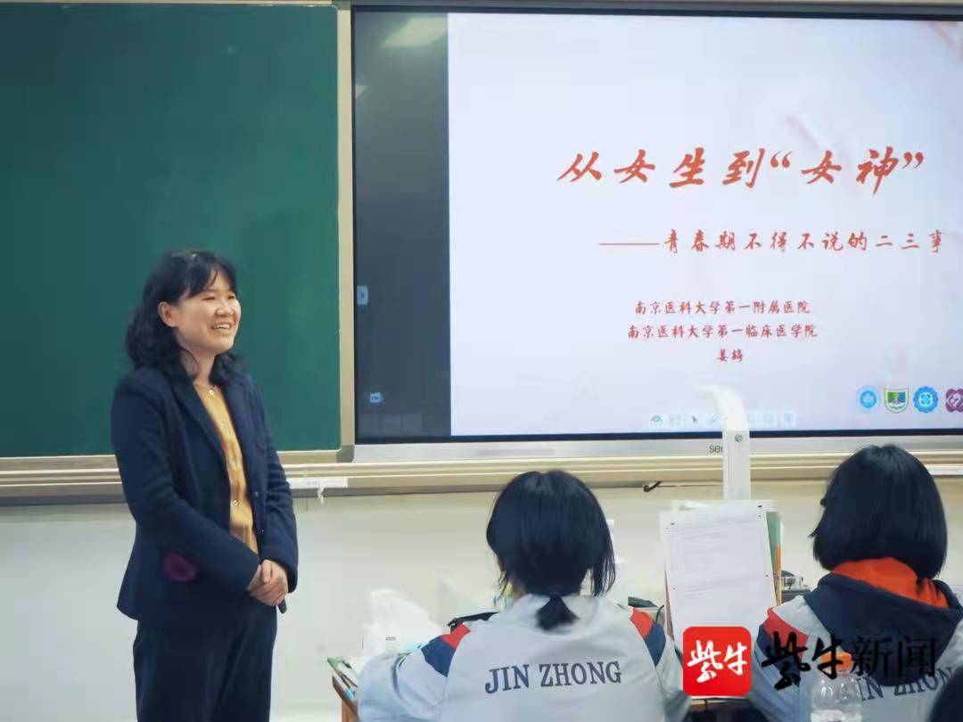 2022年3月8日“妇女节”当天,我校和南京医科大学第一附属医院合作的《南医临床医者说》选修课程第三讲开讲。这一讲的主讲人是副主任医师、医学博士姜旖,她是我校2002届高中毕业生,在属于女性的节日重回母校讲座
