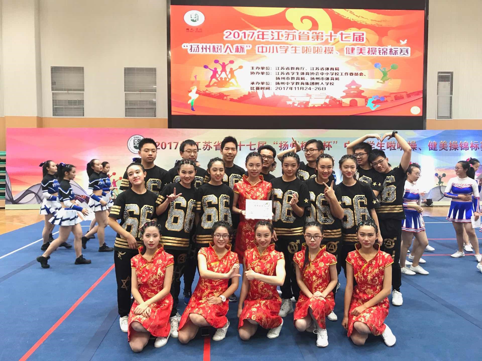 2017年11月24至26日,在江苏省第十七届“扬州树人杯”中小学生健美操、啦啦操锦标赛上,我校JZ啦啦操队继夺得南京市冠军之后再夺得全省高中组自选街舞冠军和规定街舞季军,并荣获舞蹈啦啦操团体总分一等奖。周蕴晗同