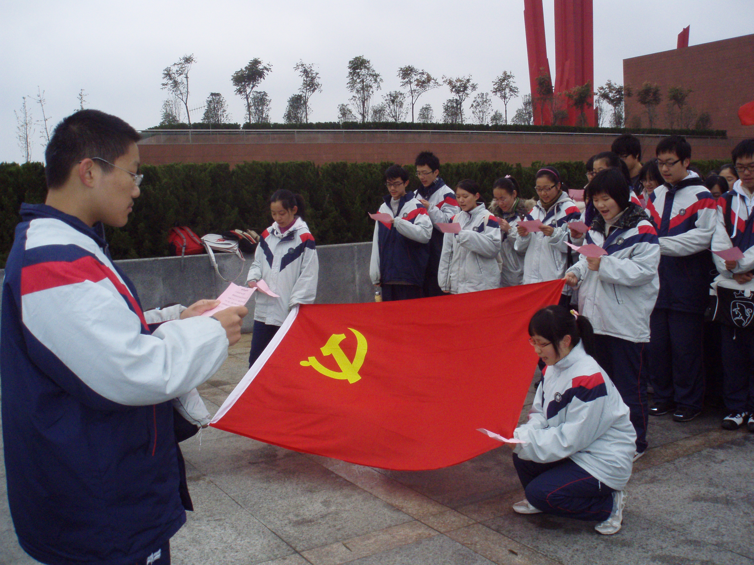 追寻先烈足迹,勇担时代重任——记“金陵中学业余党校”赴渡江胜利纪念馆参观学习记 2009年11月28日早上8:00,周六。五级以上的西北风夹杂着冰冷的雨滴让路上几乎没有行人,虽然天气恶劣,但金陵中学业余党校的一