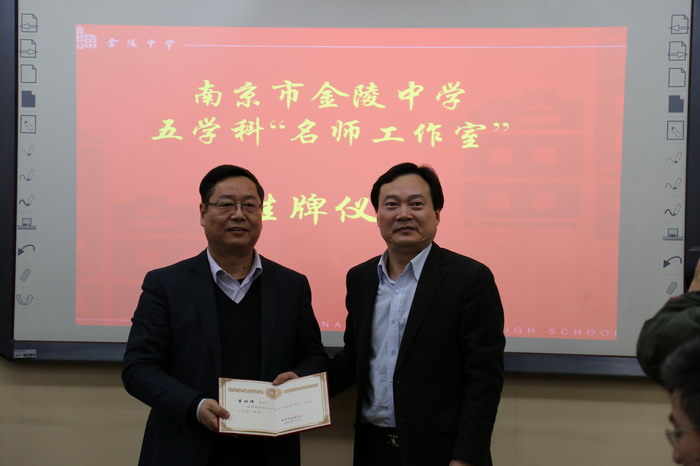 12月23日下午,我校语、数、外、物、化五门学科成立“名师工作室”,并邀请省教研室董林伟副主任、市教研室严必友主任和市教科所肖林元所长担任名师工作室顾问。 挂牌仪式上,孙夕礼校长介绍了“名师工作室”的总体
